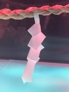万博のフランス館でしめ縄に紙垂がかけられていました。