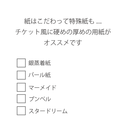 チケットっぽく硬めで厚めの用紙がオススメです。