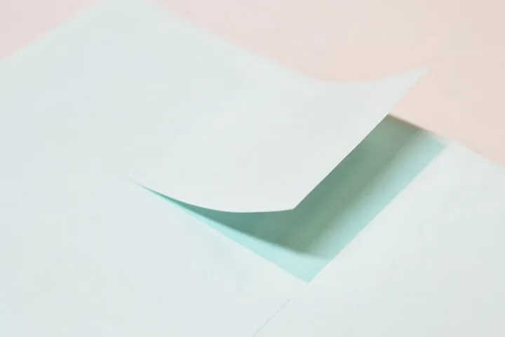 (1つポケット、2つポケット、名刺差し込みの切込が有り無し、1丁型、2丁型など)トムソン抜き後、小ロットの場合は両面テープなどで手貼りし、機械貼りも可能。